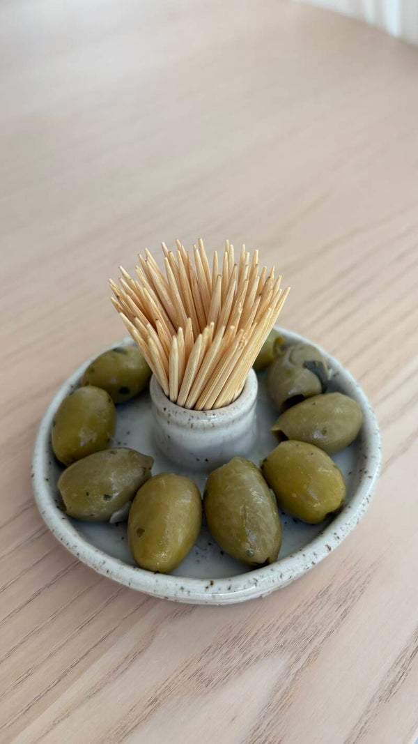Tandenstokerhouder en aperoschaaltje in 1! Ideaal voor olijven, tomaatjes, salami,...
