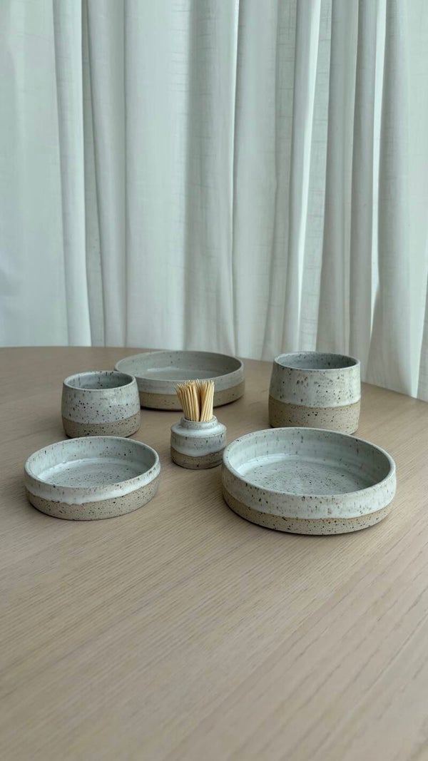 Een tafel VOL aperoplezier! Kleine potjes, aangevuld met een schaal en tandenstokerpotje. Set die bestaat uit 6 stuks.