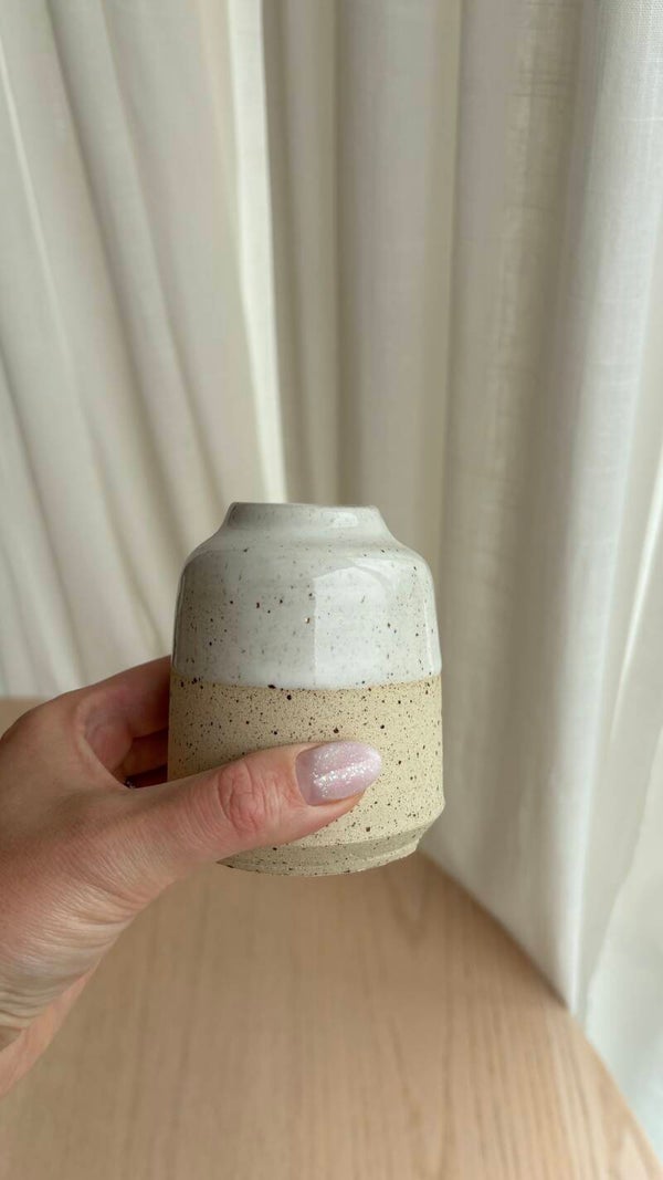 Leuk vaasje als cadeautje, of om te combineren met andere vaasjes. Werk het af met droogbloemen (niet inbegrepen). Geen enkel vaasje is hetzelfde, altijd een uniek exemplaar!