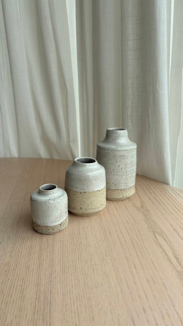 Laatste foto: de verschillende formaten vaasjes naast elkaar (xs,s,m).